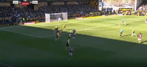 第33分钟,伯顿球员禁区内射门,球被阿雷奥拉扑住